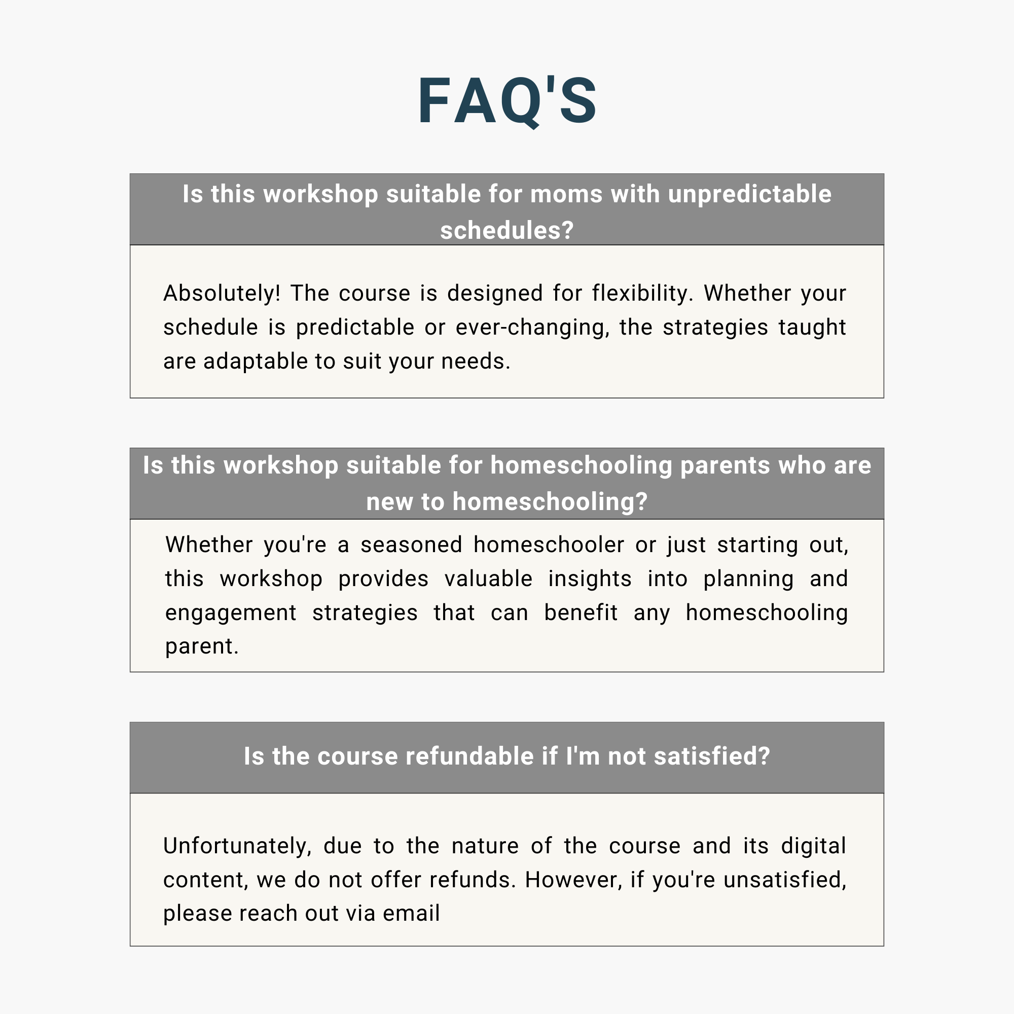 You’ll receive an in-depth video workshop, accompanied by detailed slides for reference and action steps to implement what you’ve learned, all designed to make this spring your most productive and balanced homeschooling season yet.